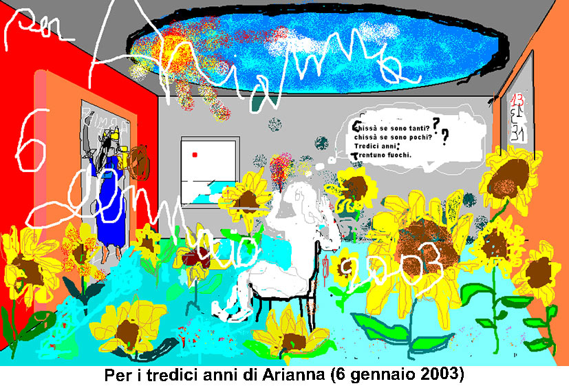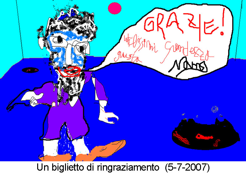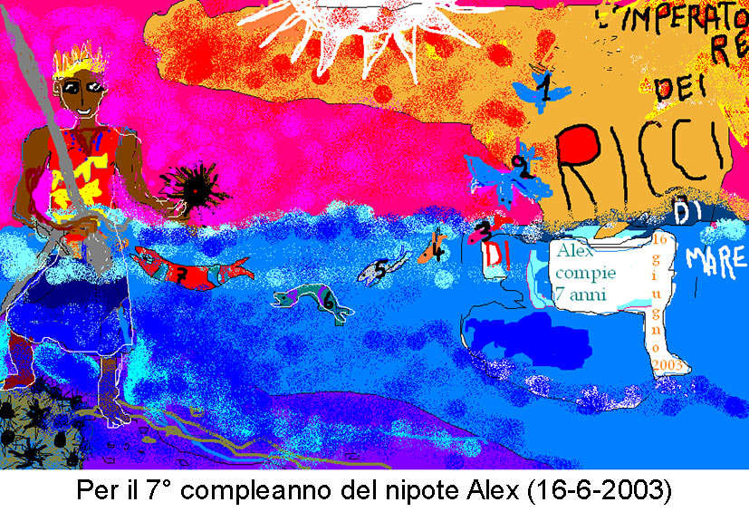 Quando scoprì il disegno digitale, e la relativa facilità di usarlo sul suo pc, vi si dedicò con il grande piacere di un novizio. Una volta, quando veniva a Lecce per l'università e stava da me a Carpignano, mi mostrò orgogliosamente i risultati. Fu in quella occasione che sapendo della mia passione, mi passò tutta la raccolta di immagini che aveva nel suo hard disk: è da questa ritrovata collezione che ho tratto molte immagini di questo sito, prima di tutto i suoi dipinti.